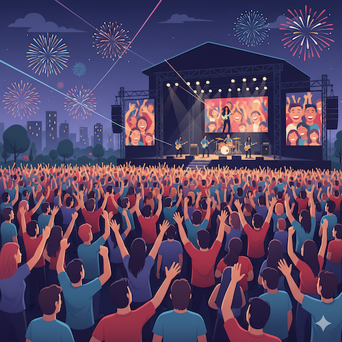 Multi-venue concert formats and digital performances: SyncFest, Borderless Beats, and Meta Arena. Designed for synchronized audience experiences and scalable ticketing.
